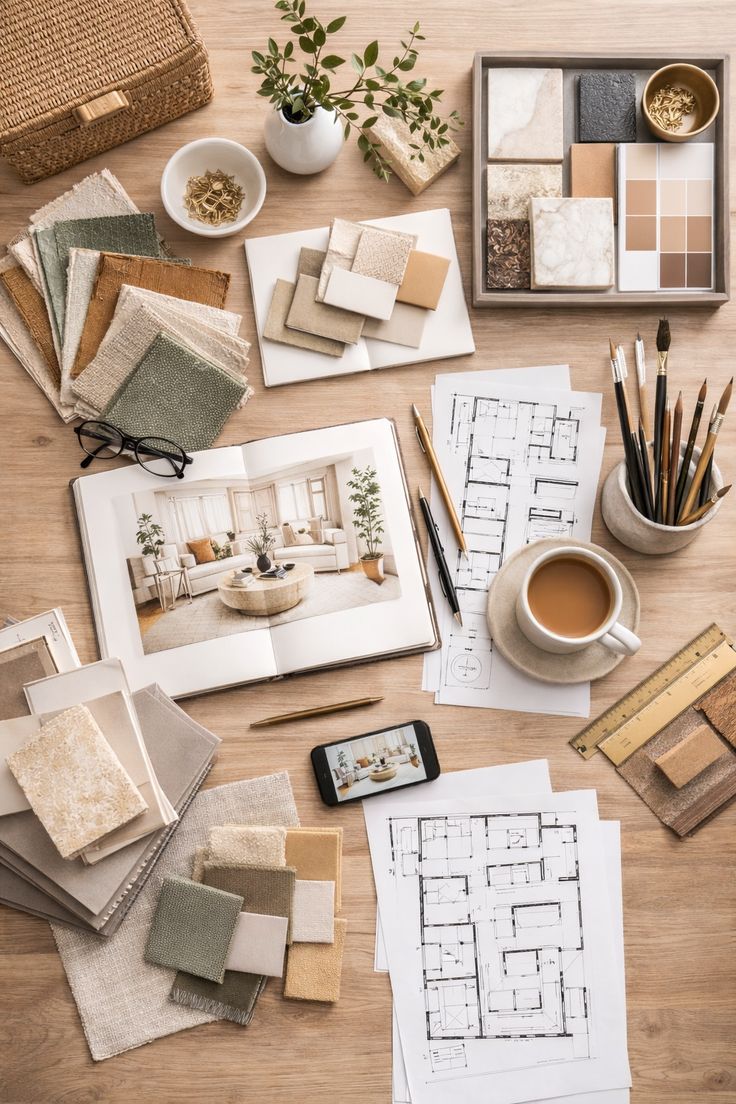 Design concept and theme Mood boards, material palette Layout planning and zoning